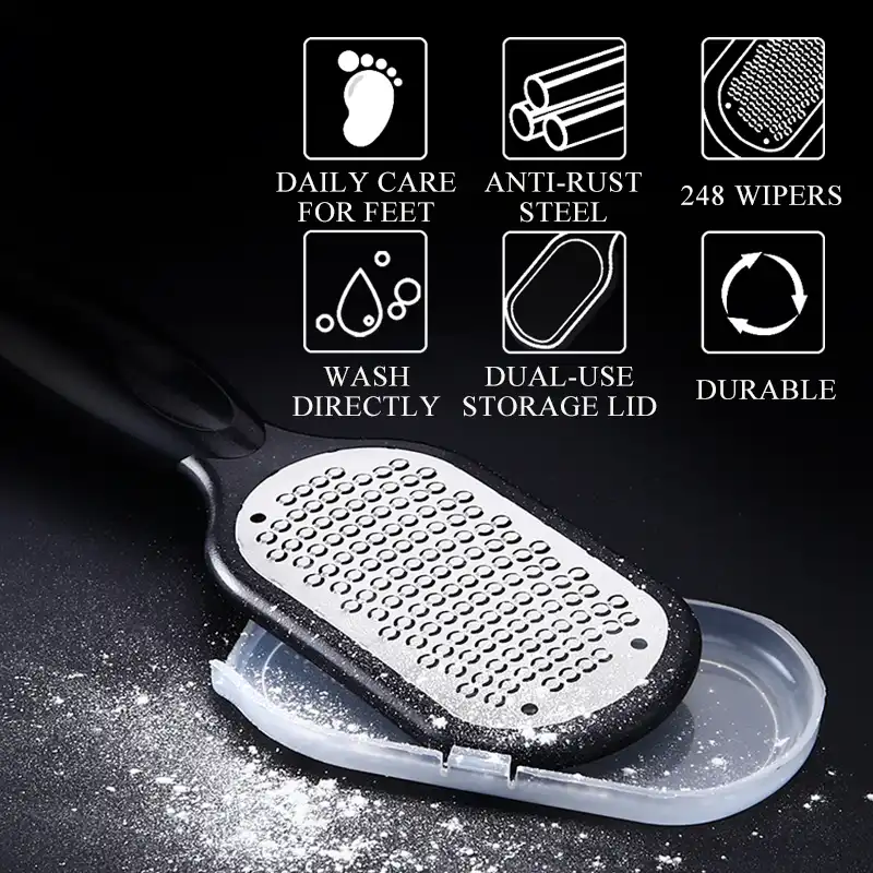 - HIGH-QUALITY MATERIALS: This Callus Remover Foot Rasp is made from premium stainless steel for anti-rust. Its waterproof feature ensures the callus remover can exfoliate dead skin or callus under both wet and dry conditions.