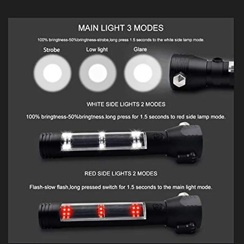 ?Car Emergency Escape Too---Features with window breaker break the stuck window and the seat belt cutter to cut the jammed seat belt; bring safe escape in emergencies, having a self defense LED flashlight tactical can help you get out of most sticky situations.