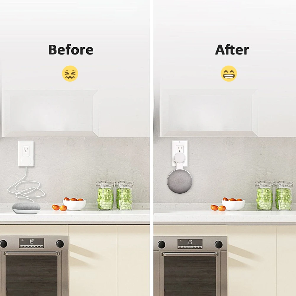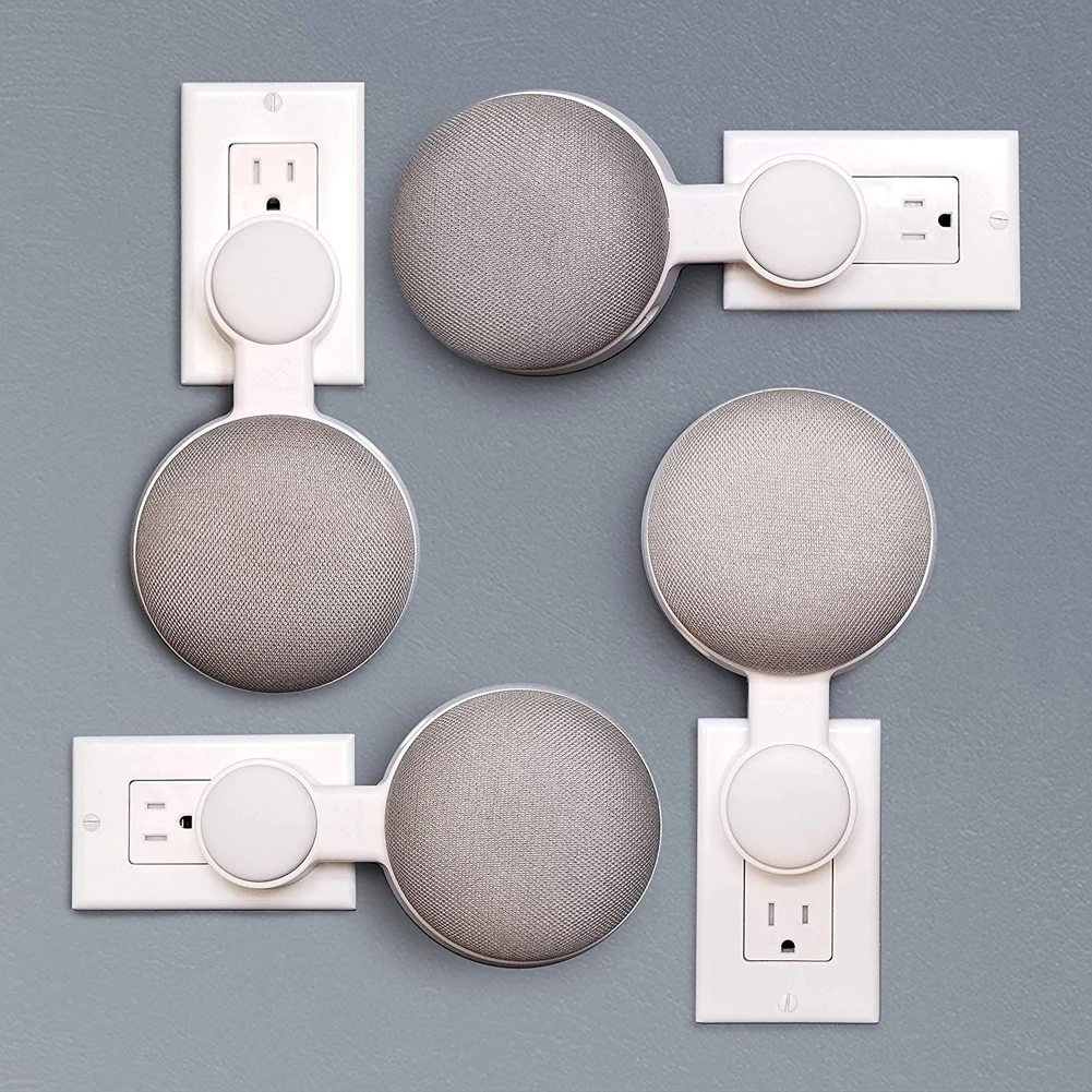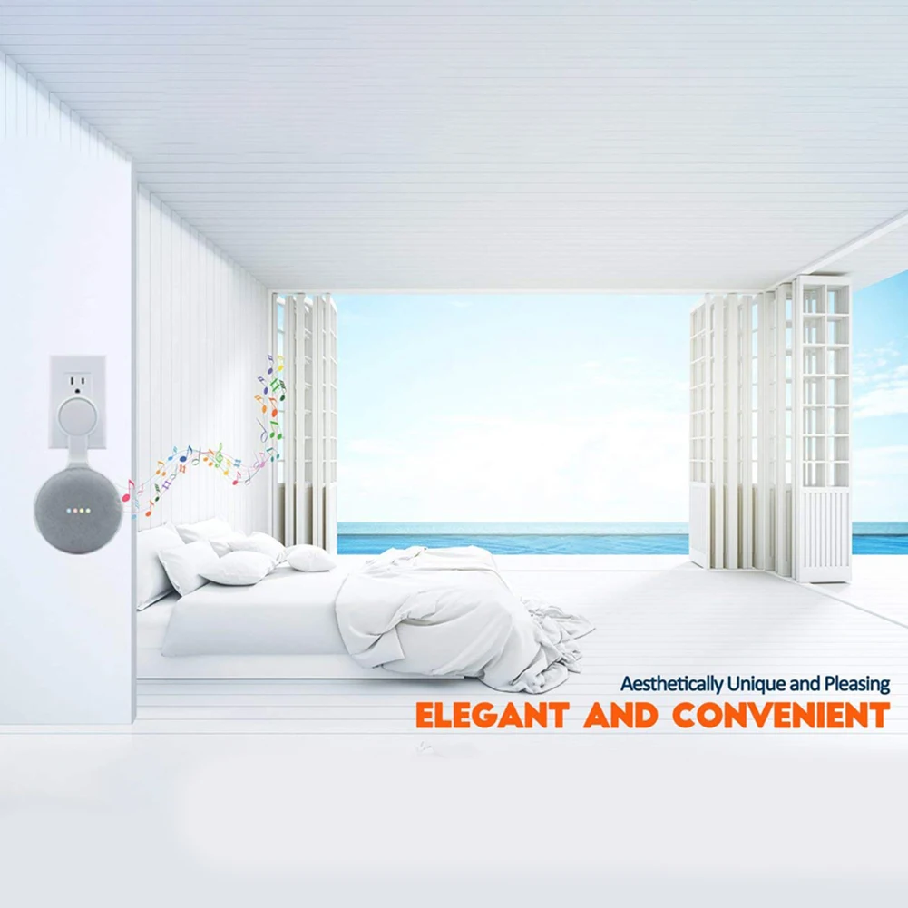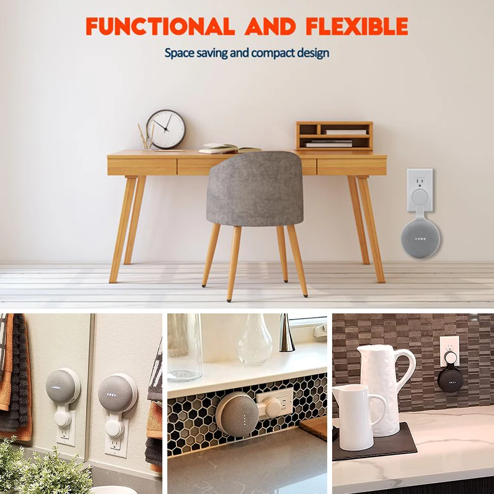 ?? Plugin design: This socket wall mount allows any open socket to hold your for Google Home Mini Voice Assistant. You can install the device in your bedroom, bathroom, kitchen, garage or office.