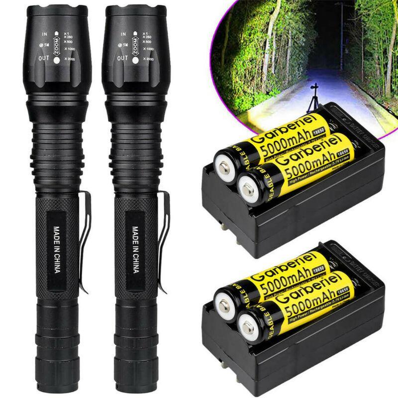 2 x Tactical 1500 Lumens 5 Modes T6 LED Flashlight +18650 Battery+ Charger