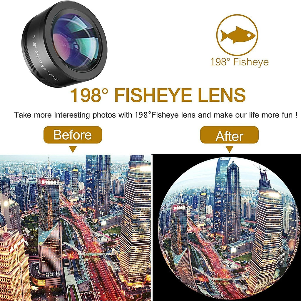 • 3 IN 1 UNIVERSAL CLIP LENS: This 3 in 1 HD Phone Camera Lens for iPhone kits includes Wide Angle Lens that can shoot larger range of scenery, 180° Fisheye Lens and Macro Lens that can take clear photos of small objects.