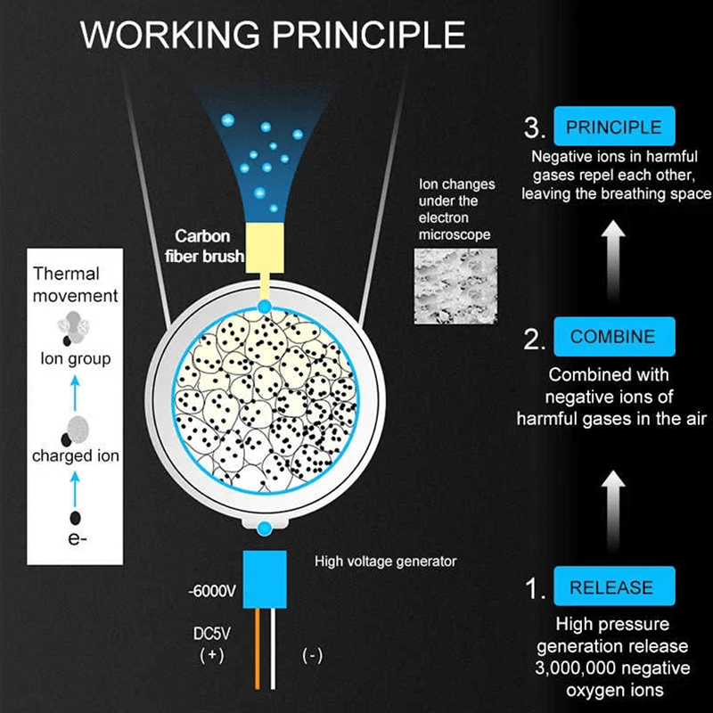 - This personal air freshener ??emits more than 3 millions negative ions that push pollutants away from your personal space.