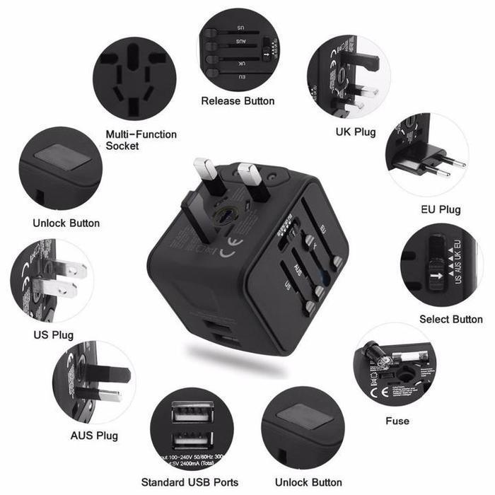 Our Universal Travel Adapter is a compact, all-in-one adaptor plug that fits electric wall outlets in more than 170 countries (USA, Canada, Australia, UK, France, China and more!)