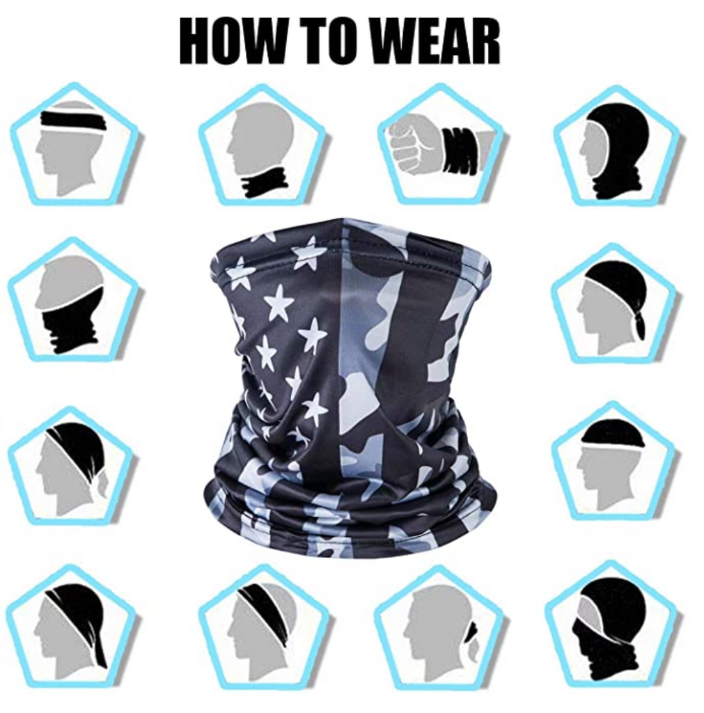 - ??NECK GAITER MASK FOR MULTIPLE ACTIVITIES??: Fashion American flag element design, perfect for various outdoor sports and activities: Independence Day, National Day, Music Festivals, Concerts, Biking, Raves, Paintball, Hiking, Yoga, Exercising, Yard Work, Riding, Fishing, Cycling, Motorcycle, Motocross, ATV Bike, Running, Hunting, Climbing, Camping, Tactical, Skiing, Snowboarding. Give your face best protection.