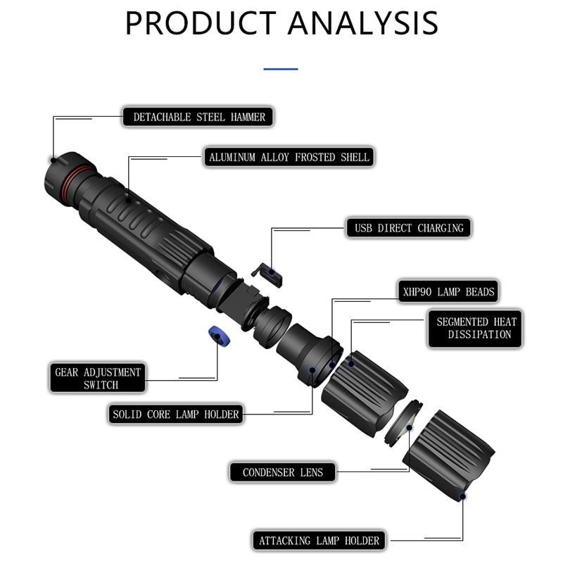 Brightest xhp70.2 High Powerful Rechargeable LED Flashlight