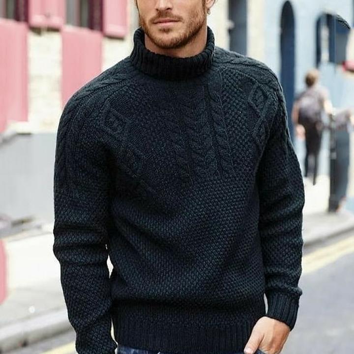 Casual High Collar Linen Pattern Solid Color Long Sleeve Knit Sweater