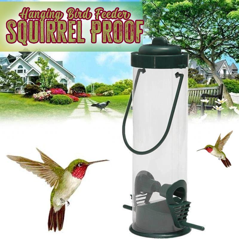 - CLEAR VIEW: This Hanging Bird Feeder Squirrel Proof is a transparent seed compartment so you can easily feed pets or wild birds and watch them in your free time. The translucent design also makes the bird feeder simple and clear allowing you to see when to refill again.