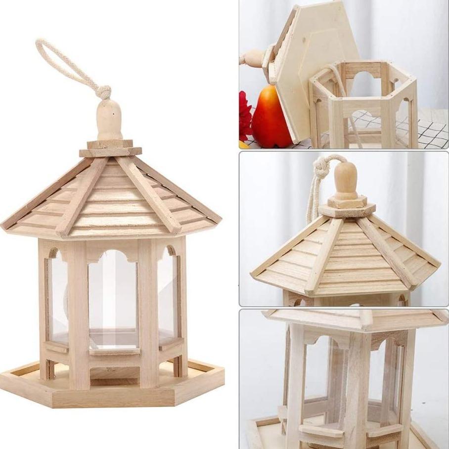 Hanging Bird Feeder Squirrel Proof Wooden House
