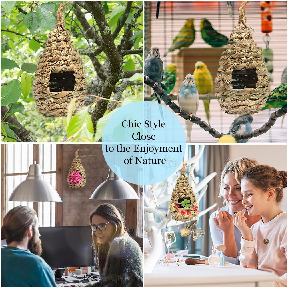 - HAND-KNITTED: Each of our bird nests is hand-woven. The fibers are tightly woven, making it difficult to fall off, and the drop-shaped handwoven bird's nest is resistant to strong winds as well.