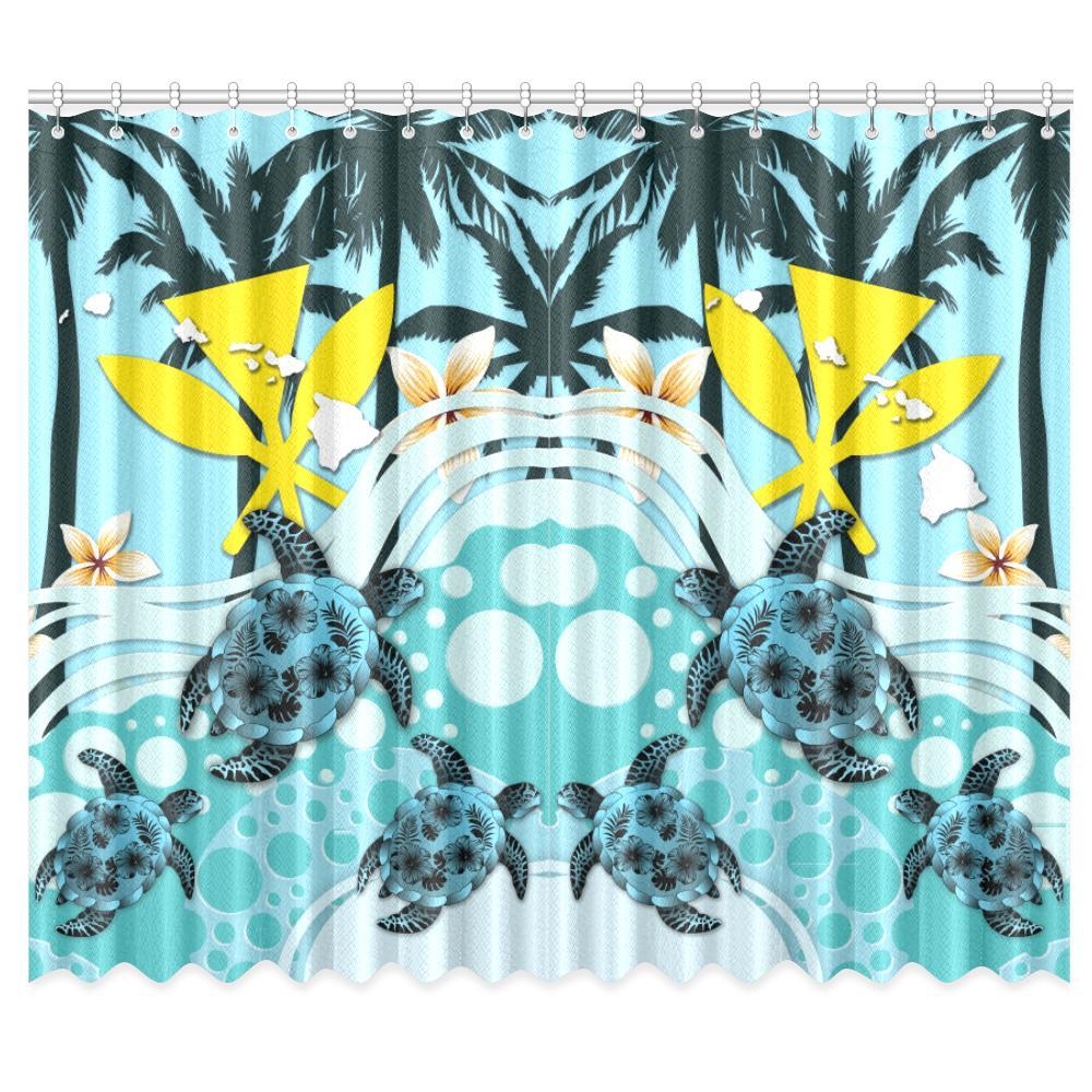 Hawaii Window Curtain - Blue Turtle Hibiscus A24