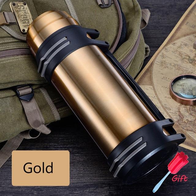 This Stainless Steel Thermos is constructed with double wall stainless steel for durability and Thermos vacuum insulation technology to keep beverages hot for up to 18 hours or cold for up to 24 hours. This bottle features a twist and pour stopper which allows you to pour your beverage without removing the stopper completely. It also comes equipped with a built-in stainless steel serving cup so there is no need to pack an additional cup, allowing for beverage enjoyment anywhere. The exterior stays cool to the touch with hot liquids and sweat-proof with cold liquids.