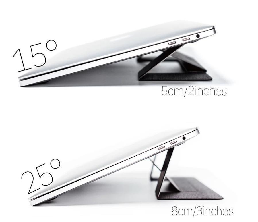 You will never be troubled by forgetting to take a laptop stand when going out, because this stand acts as a natural, seamless appendage of your computer.