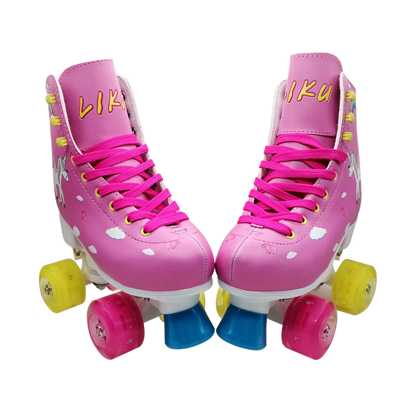 Watch your child roll out to the roller derby with these Kid's Light-Up Double Roller Skates! Available in two cool styles! Our fresh skates deliver lasting comfort for your little one with a comfy cotton padding. These feature lace up skates to keep your child foot in place wherever they roll to. Watch them shine with the built-in LED lights too! The skates fit true to size, so make sure to order correctly.
