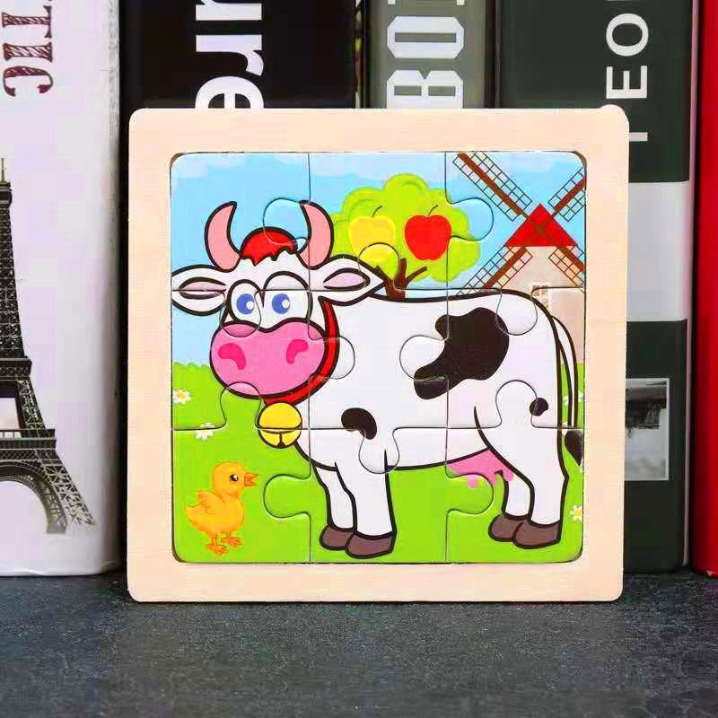 - Set: These puzzles are 11 x 11 (9 pieces) and feature various animal illustrations for kids ages 2-5.