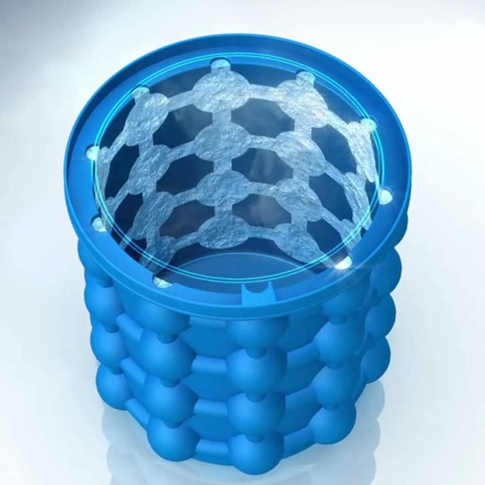 The inner cylinder holds the water lined along the outer chamber while it freezes and later serves as storage for the already made ice cubes. You can make multiple batches of ice and keep them in one handy container.