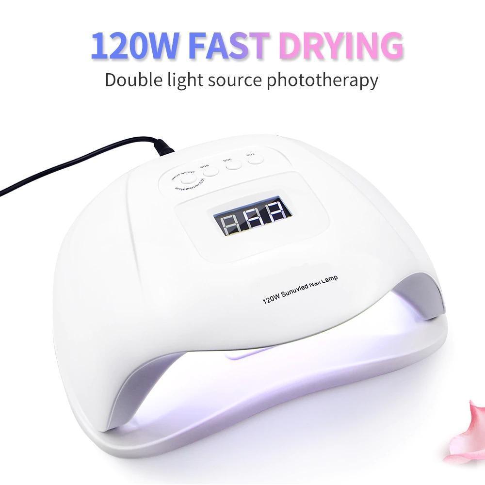 - POWERFUL AND 50% QUICKER: the nail lamp quickly dries your gel nail polish super fast and can cure all types of UV and LED nail gel - e.g. Base Coat, Top Coat, Color Gel, Hard Gels, Builder, acrylic, sculpture gel, gem glue etc.