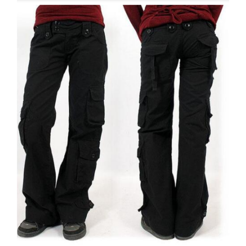 Our Flared Cargo Pants made with a thick and resistant cotton of great quality and with many pockets - perfect for everyday life or to go travelling!