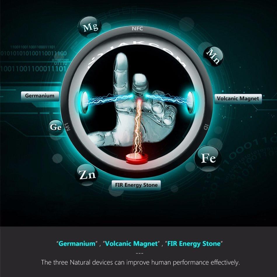 - FUNCTIONAL SMART RING: With its new NXP smart NFC chip, it brings top speed operation experience to the following Android mobile NFC features, like "Private Note", "Mobile phone lock", "Quickstart", and "Share information". It comes with three natural devices: Germanium, Volcanic Magnet, and FIR Energy Stone that can improve human performance effectively.
