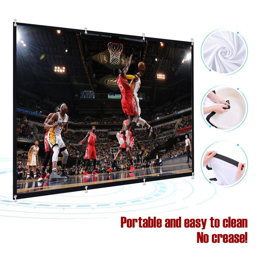 • HIGH-QUALITY. Made of natural polyester fibers, the projection is clearer and brighter than most other projection screens, the projection screen is thicker and smoother, and does not wrinkle when folded/crushed.