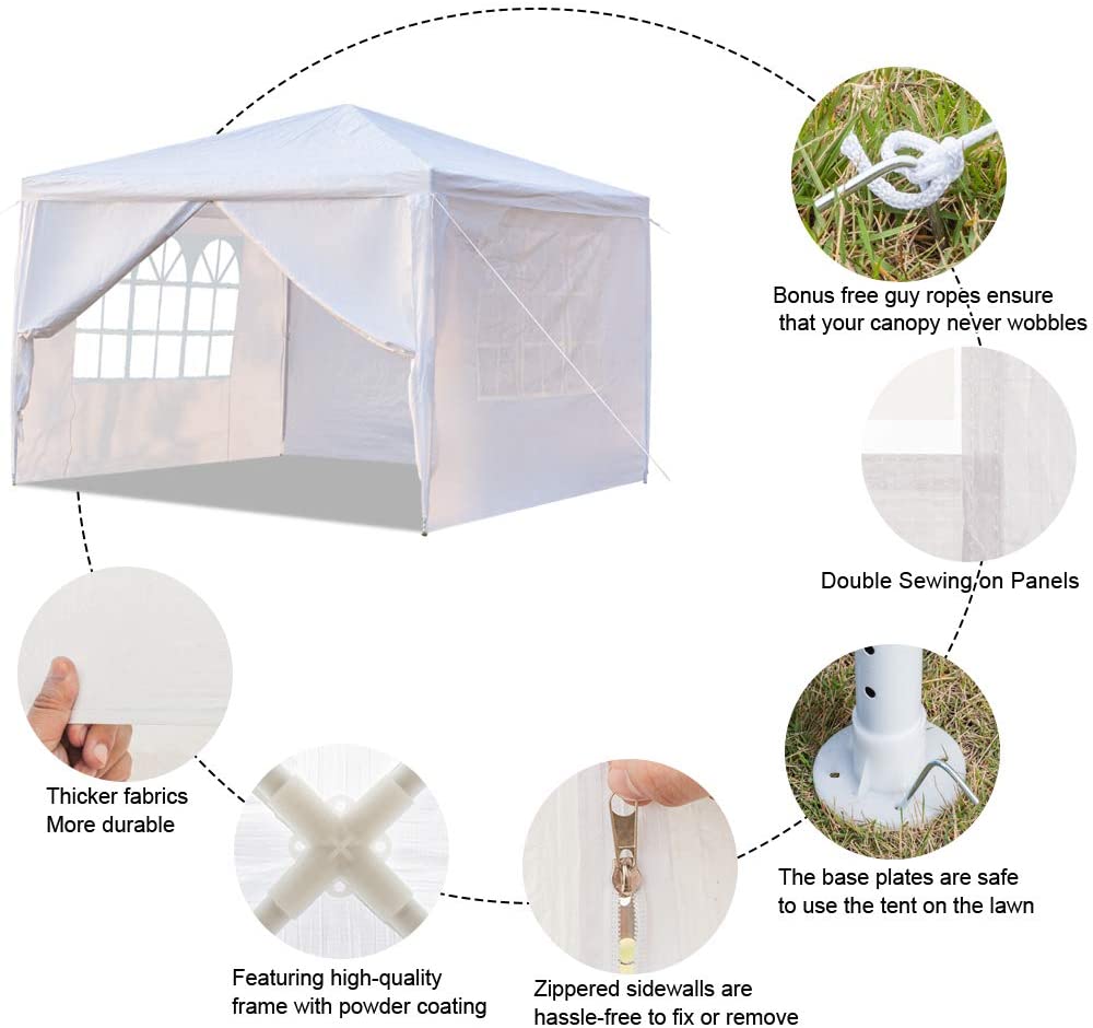 • WEATHERPROOF: You can rely on this Party Canopy Event Tent because it is made weather protected. It has 2 detachable window walls and 2 detachable zip-up doorways help to provide protection from sun rays, wind, and rain.