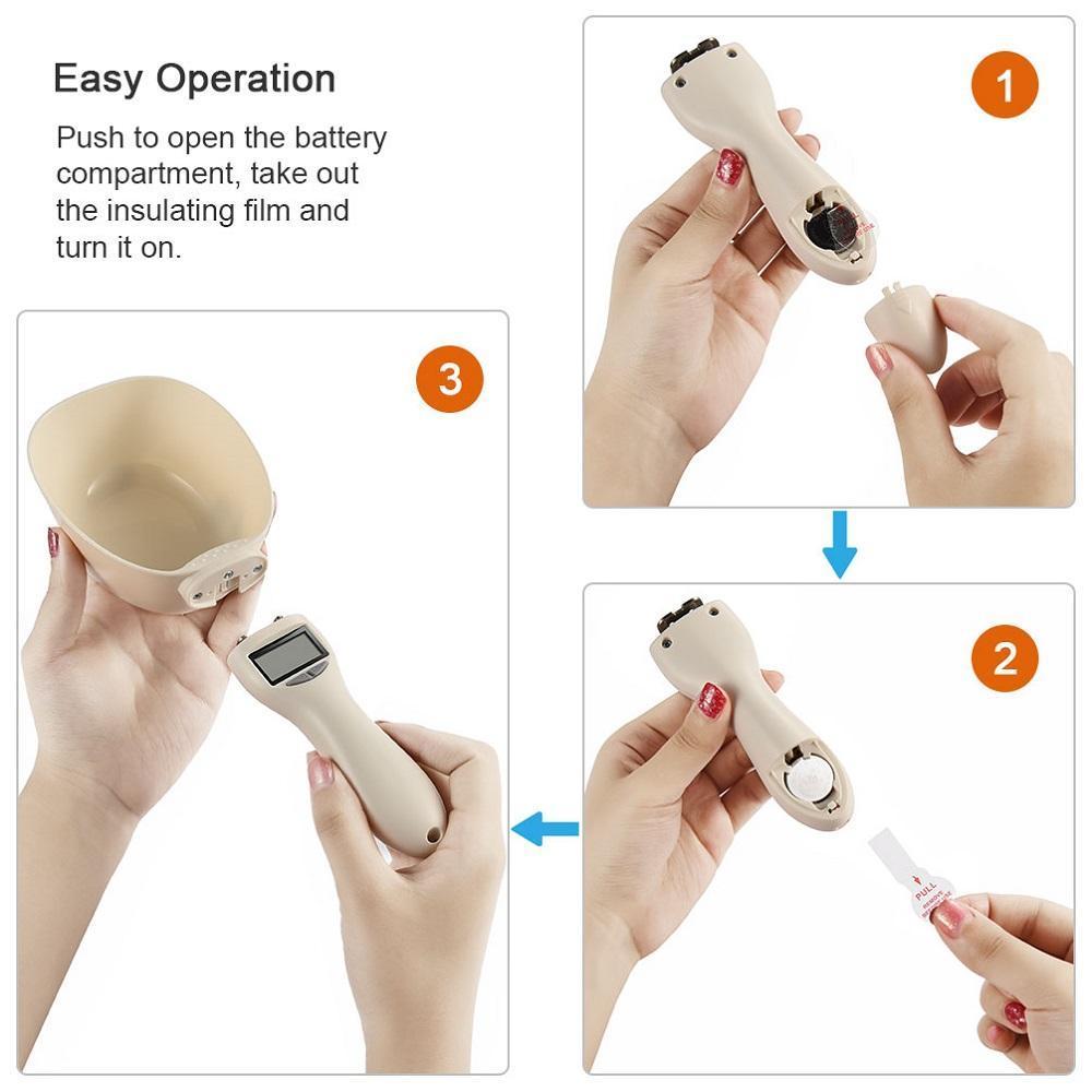Easy Operation: Simply attach the measuring cup to the LCD scoop after removing the insulating film from the battery compartment, and you're ready to go!