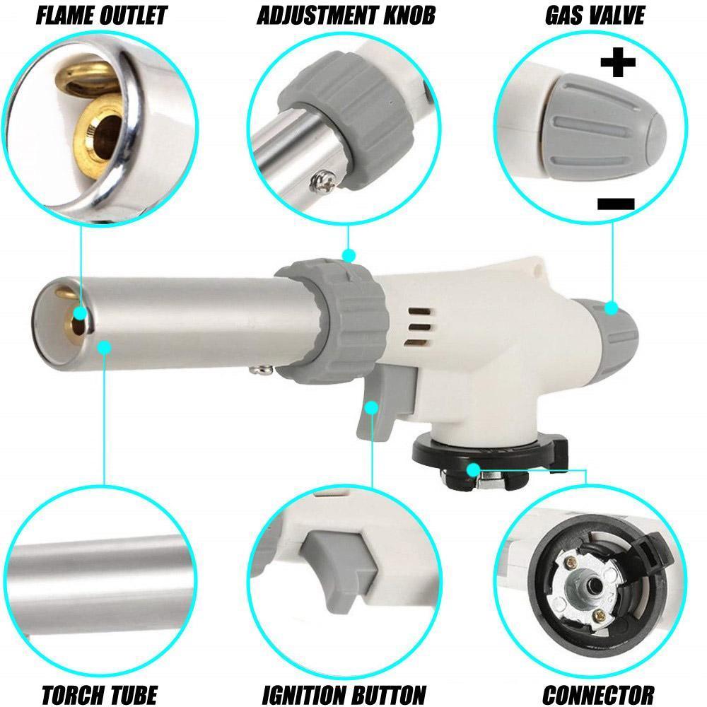 Portable Butane Torch is suitable for both professional and creative welding or family cooks. It is frequently used for soldering, bending and heating. Portable Butane Torch can also be used in the processing of delicious caramel desserts, meat barbecue, cigar lighter, small handicraft and so on. Adjustable flame size and shape to concentrate the flame as much or as little as you need, one touch piezo ignition, and stabilizing plate for your safety.