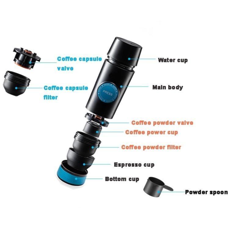 • ELECTRIC AUTOMATIC DESIGN: Our Portable Coffee Maker is an electric espresso maker designed with a handheld machine for automatic extraction at home, outdoor, camping, or travel.