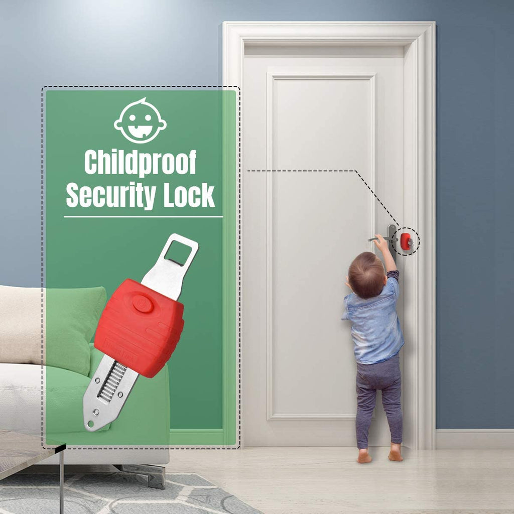- EASY TO INSTALL: It is simple to install without any tools. Just insert the metal piece into the recess on the door jam, close the door, then take the red handle grooves over studs on the metal piece, and that’s it! It only takes seconds.