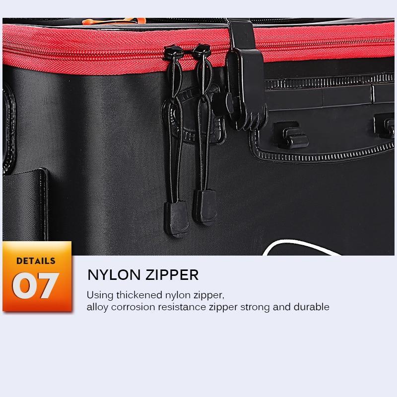 Two zippers, top cover mesh pocket design, fresh air circulate, live bait and fishes can stay alive