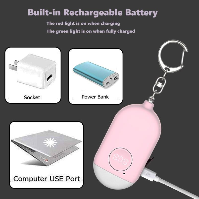 Never get stranded without being able to alert for help. Scare off attackers in any unwanted situation. Use our Rechargeable Personal Alarm Emergency Keychain in emergency situations.