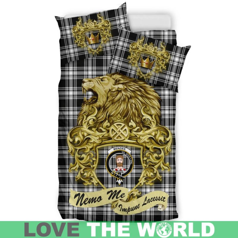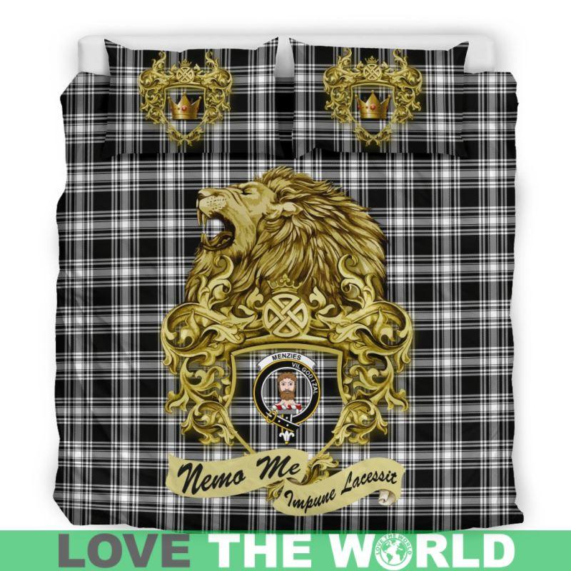 Scotland Lion Menzies Black & White Modern Tartan Bedding Set K7